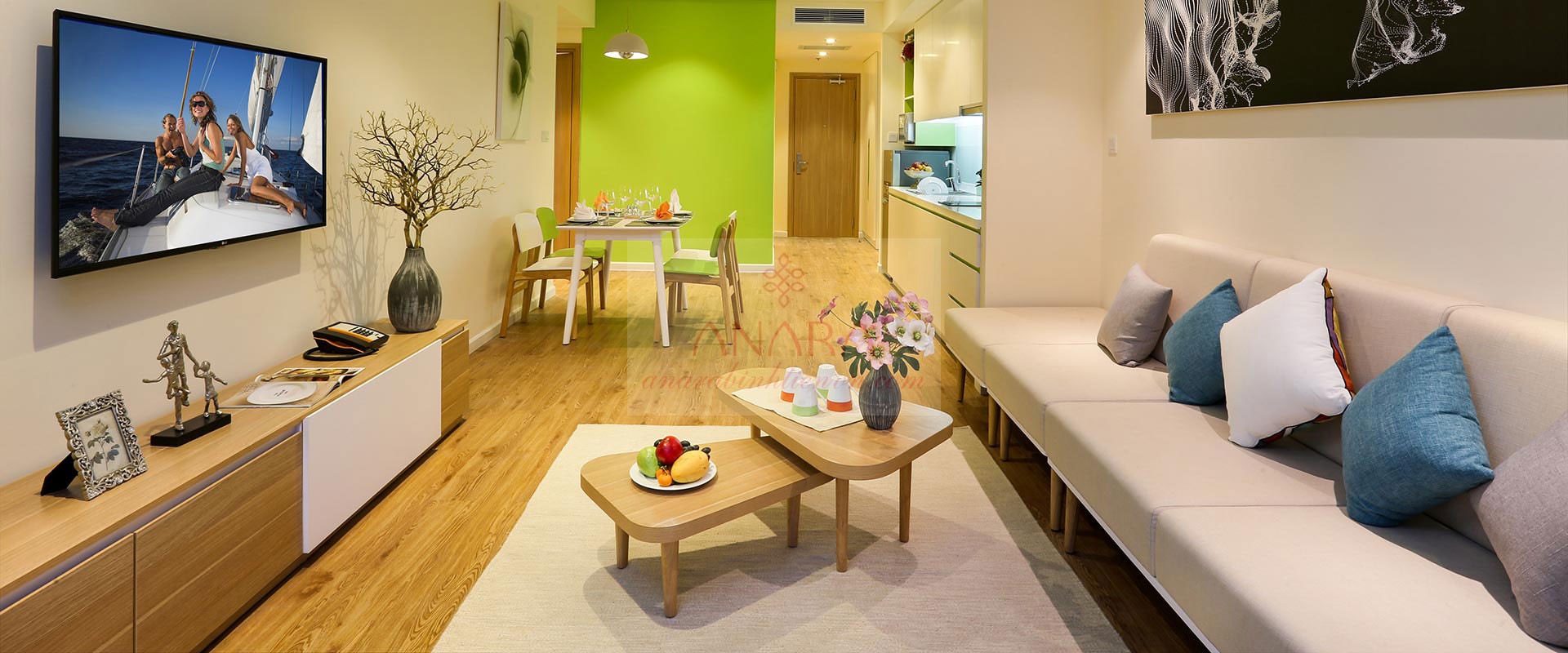 Tất cả các căn hộ đều được trang bị đầy đủ tiện nghi cao cấp: Giường đôi cỡ lớn trong tất cả các phòng ngủ. Sofa, bàn trà, bàn ăn, tủ quần áo rộng rãi, TV màn hình lớn. Máy giặt, lò vi sóng, bàn là, giàn phơi quần áo tiện lợi cho lưu trú dài ngày. Điều hòa hai chiều, chăn ga sạch sẽ được thay mới và dọn vệ sinh mỗi ngày.